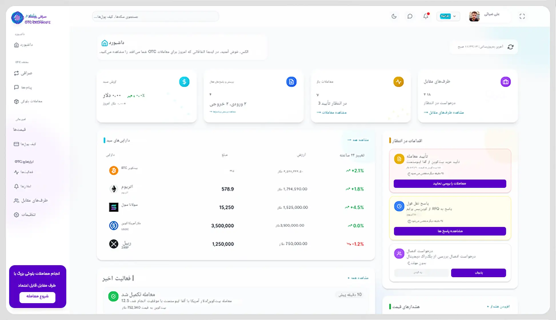 امکانات کامل برای مدیریت نقدینگی، کاربران و سفارشهای OTC الاح ششود